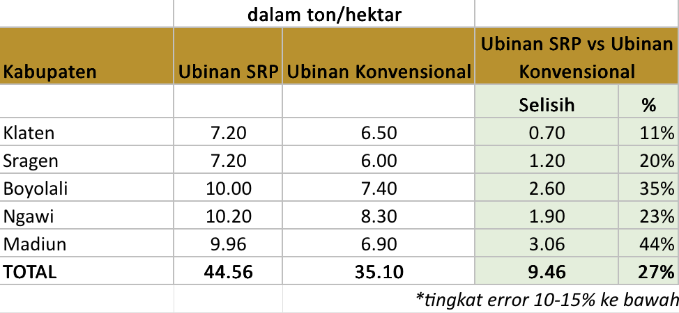 Sawah SRP menghasilkan panen rata-rata 27% lebih tinggi dibandingkan sawah konvensional.